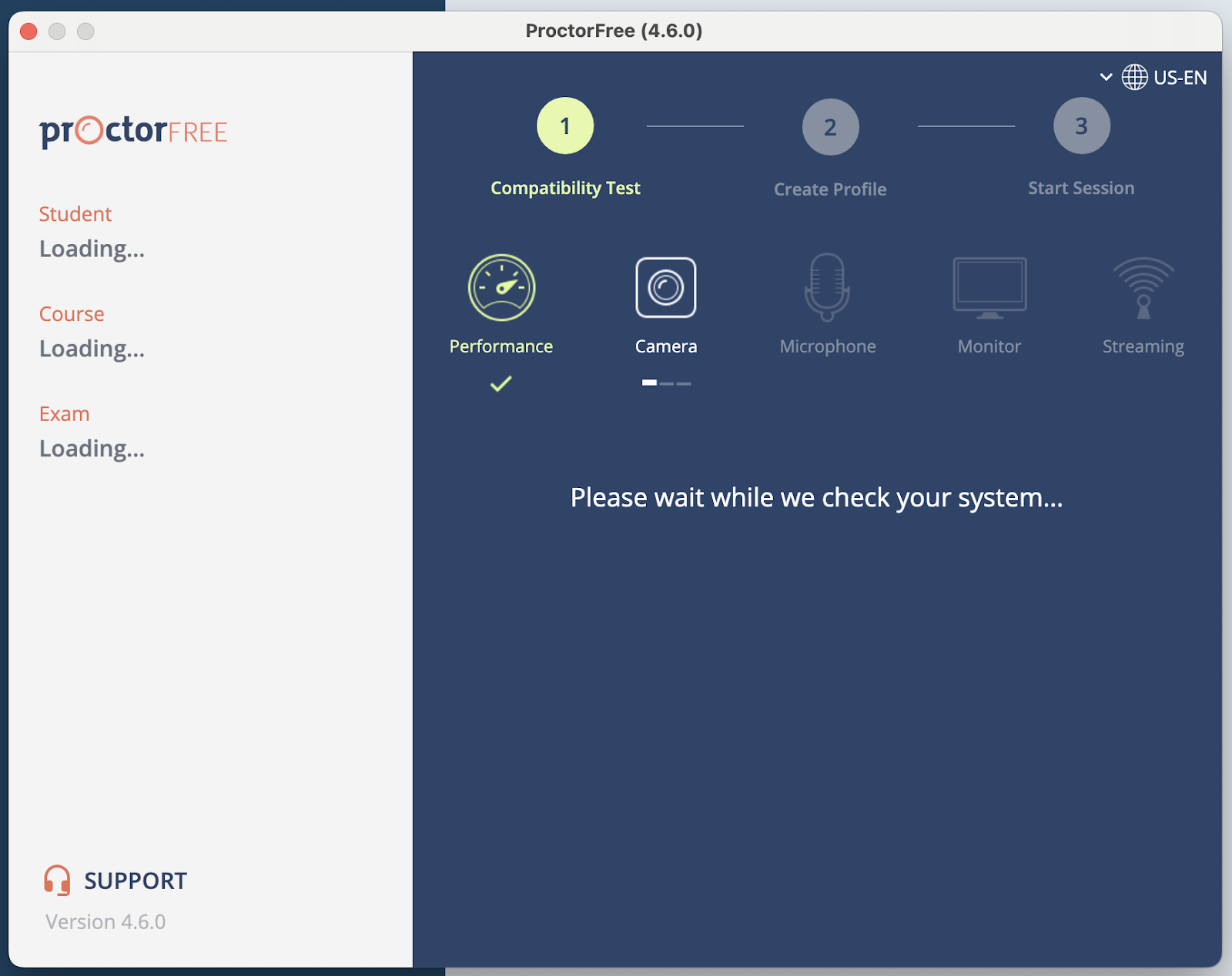 | ProctorFree will now go through a brief compatibility check for your machine. | |