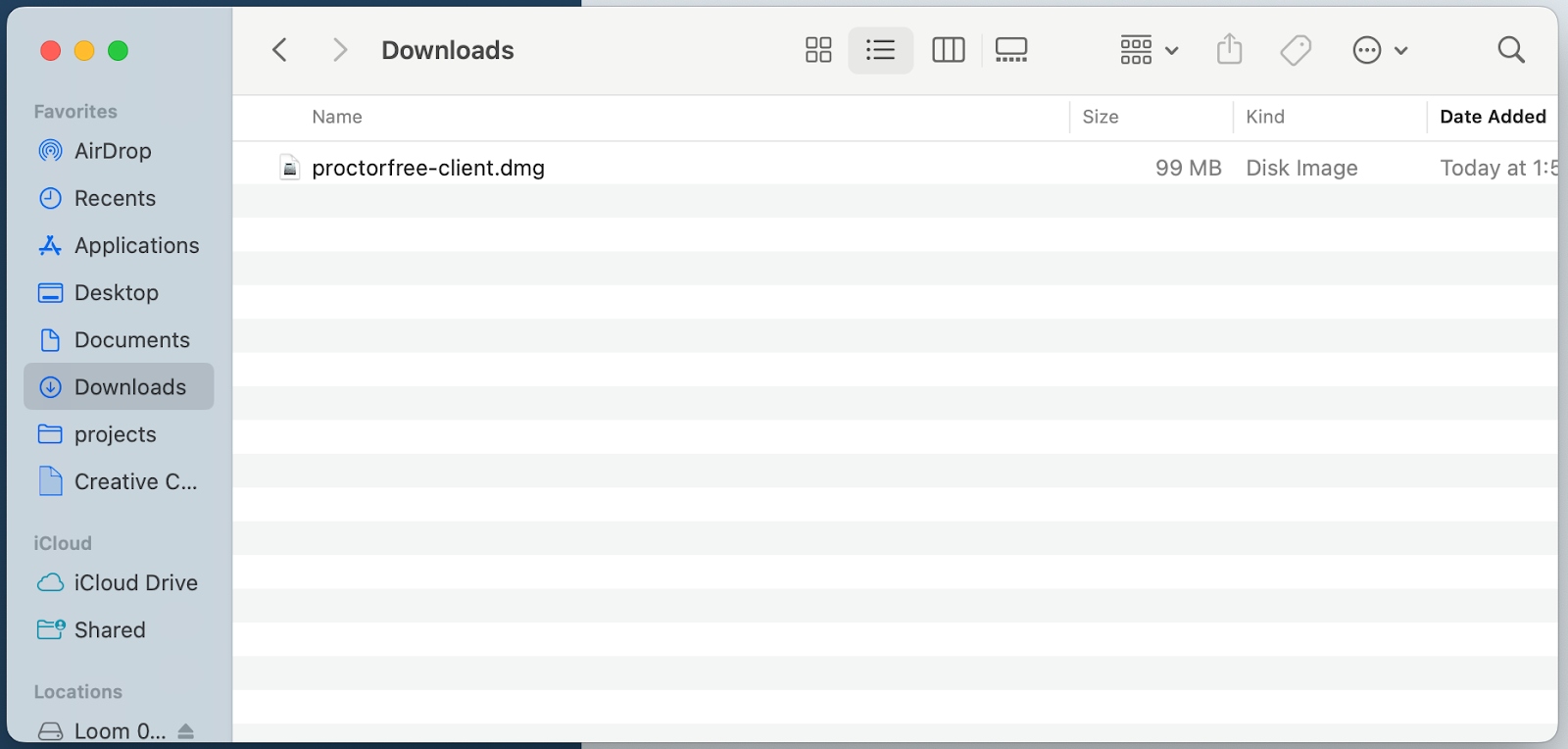 | You will now need to download and install ProctorFree to your machine. Locate the download and install link in the bottom middle of your screen and click it. This will download the executable for installing ProctorFree on your local machine. | |