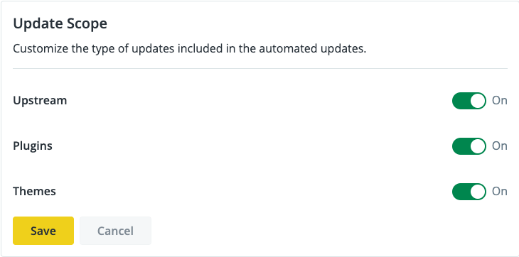 Use the On/Off toggles to choose which features and elements should be tracked or excluded from updates.