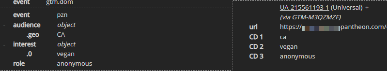 Pantheon’s Edge Integrations offers advanced and powerful features for content personalization. At this time, two key primary features are supported: Geo and Interest. These features allow us to serve different content to each user at given URLs. Google Analytics won’t differentiate between the personalized versions of a page unless you instruct it otherwise. This section aims to help you enhance your configuration to track personalization experiences via Google Tag Manager.