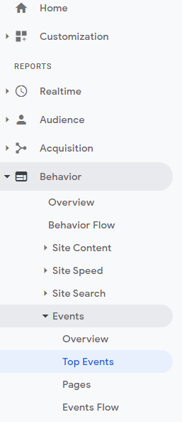To find your new data, log into Google Analytics. In the main navigation, go to Behavior > Events > Top Events.