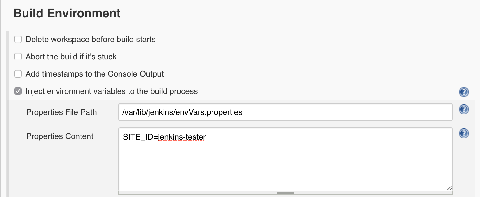 Enter the path to your Jenkins environment variables file in the Properties File Path field. On Debian-based systems, this is usually