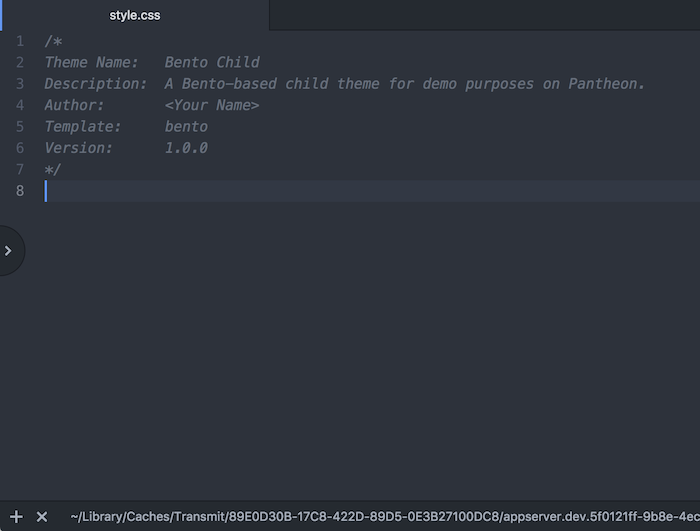 style.cssfile in Atom. Saving changes to this file in Atom will trigger Transmit to upload the file to Pantheon automatically. -